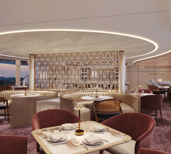 Influenced by the ‘Magic Carpet’ on the cruise line’s latest ocean ships, Celebrity Cruises plans to implement a similar design to its river ships. The ‘Magic Edge’ cantilevered pods will hang over the side of the ship, offering an experimental dining experience.